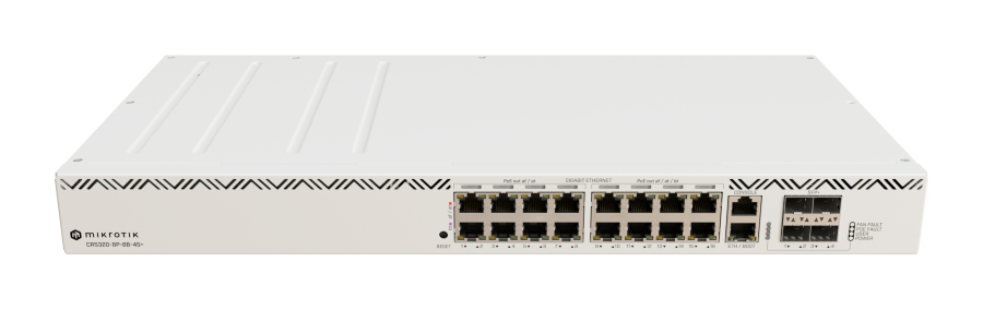 MikroTik CRS320-8P-8B-4S+RM, yüksek güçlü PoE++ (802.3bt) desteği sunan, 17 Gigabit Ethernet portu ve 4 adet 10G SFP+ fiber uplink portuna sahip gelişmiş bir Layer 3 yönetilebilir switchtir. Bu cihaz, özellikle oteller, ofisler, konferans salonları ve yüksek katlı binalar gibi yüksek güç gereksinimi olan ortamlarda kullanılmak üzere tasarlanmıştır.