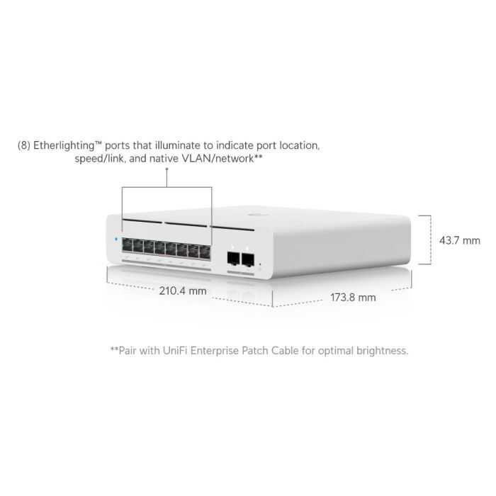 Ubiquiti UniFi Switch Pro XG 8 PoE, yüksek performanslı, kompakt ve yönetilebilir bir Layer 3 switchtir. 8 adet 10G PoE++ RJ45 portu ve 2 adet 10G SFP+ uplink portu ile donatılmıştır. 155W toplam PoE bütçesi sayesinde yüksek güç gereksinimi olan cihazları besleyebilir. Etherlighting teknolojisi ile port durumları görsel olarak gösterilir. Fanless (fansız) tasarımı sayesinde sessiz çalışır ve masaüstü veya duvar montajı için uygundur.